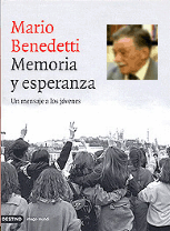 Hijo de Brenno Benedetti y Matilde Farugia de nacionalidad italiana, Mario nació el 14 de septiembre de 1920, en Paseo de los Toros, departamento de Tacuarembó. La familia Benedetti se mudo a la ciudad de Montevideo cuando el escritor tenía cuatro años de edad. Sus primeros estudios los hizo en el Colegio Alemán de Montevideo, donde comienza a escribir sus primeros poemas y cuentos. Benedetti, con 80 libros editados en sus 84 años de vida, pasa parte del año en Madrid, donde ha recibido entre otros el premio Reina Sofía Su obra reconocida internacionalmente en versiones o descripciones que se han hecho en diferentes largometrajes, como La tregua (1974) y El lado oscuro del corazón (1986. Además, sus poemas y canciones han sido musicalizados e interpretados por artistas como Joan Manuel Serrat - en El sur también existe (1986)-, Pablo Milanés, Daniel Viglietti y Nacha Guevara, entre otros. Hablando en el documental, el desparecido escritor español Montalbán dice: "Benedetti no nos ha dejado tanto el testimonio de una teoría de la finalidad de la vida y de la historia, como el del malheur final del milenio, no por todo aquello que podría haber sido y no fue sino por todo aquello que tendría que haber sido y no ha sido". Mario Benedetti acaba de dar a conocer en España su ultimo libro “Memoria y esperanza” "Qué puede decir un poeta de más de ochenta años a la gente joven, que no lo haya dicho ya?. Poco, pero que, fundamentalmente, lean", señala Mario Benedetti en la primera página de "Memoria y esperanza", que justo el día en que cumplió 84 años, fue dado a conocer. Memoria y esperanza. Un mensaje a los jóvenes lo que no consiga el tiempo, que lo hagan las palabras. Benedetti se propone convencer de que es preciso salvar la utopía de los bombardeos publicitarios, la globalización y la riqueza. En su libro combina poesía y reflexiones, “qué les queda por probar a los jóvenes en este mundo de rutina y ruina”, “Soy un poeta viejo y un viejo poeta, que en lugar de pensar –como muchos de los de mi generación- que los viejos somos sabios, me pregunto, cada día que pasa, si el mundo no estará así porque no les dejamos lugar a los jóvenes”. Algo que demuestra la idea del autor de que se debe escuchar más, y mejor, lo que los jóvenes tienen que decir. En su nuevo libro Benedetti se manifiesta preocupado por el consumo de drogas entre los jóvenes, indicando que este fenómeno ha sido un legado de la cultura estadounidense: “En este confuso y tramposo presente, defender a los jóvenes de los daños casi siempre irreversibles de la droga, es una tarea sobrehumana”. Entre otros muchos temas vinculados con los jóvenes actuales Benedetti expresa en este ultimo libro su opinión sobre sexo. “En la pubertad es una revelación. La masturbación inaugural, el orgasmo de estreno, no sólo revelan posibilidades corporales hasta ese momento sin estrenar, sino también una ampliación de la vida interior. Con el sexo, con el erotismo, cambian el ritmo y la calidad de los sentimientos” Con un dejo de critica a su generación el autor de El país de la cola de paja dice “La conciencia es ubicua/ la siento a veces en el pecho” y “que la mayoría de los adultos quieren enterrar en el olvido la conciencia, mientras que en los jóvenes todavía está muy despierta”. LA ONDA® DIGITAL |