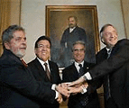 Entendemos que el Mercosur es el núcleo más importante del proceso de unificación continental suramericana, en la medida en que ha logrado estructurar, como eje aglutinante, a los dos países de mayor peso específico en la región, Brasil y Argentina, en la perspectiva que planteara el histórico discurso del General Juan Domingo Perón en la Escuela Nacional de Guerra, el 11 de noviembre de 1953[2]. La idea fundacional de que sólo una alianza estratégica entre Argentina y Brasil podía establecer un núcleo geopolítico, económico y poblacional capaz de atraer como un inmenso planeta al conjunto de los estados del continente a un proceso de integración, comenzó a tomar forma histórica e institucional. La reciente incorporación plena de Venezuela, que pone en el Mercosur, además, la presencia de un gran productor petrolero, el pago simultáneo de su deuda a los organismos internacionales por parte de Brasil y Argentina y la asistencia financiera prometida y comenzada a ejecutar por parte del gobierno de Hugo Chávez han sido las manifestaciones más evidentes de la existencia real de este nuevo eje de reagrupamiento continental. El acuerdo para la construcción de un megagasoducto que una el lago de Maracaibo con la Bahía Lapataia, atravesando longitudinalmente nuestro continente, obra a la cual el presidente Evo Morales de Bolivia, en su discurso ante la Asamblea Legislativa de su país, ha pedido expresamente ser incluido, da una idea de la magnitud y la potencialidad sinérgica del bloque continental nacido en el Tratado de Asunción. Pero desde sus inicios el Mercosur ha sufrido periódicas crisis determinadas por la distorsiva influencia que han jugado los núcleos empresariales y mercantiles de los dos países económicamente más importantes del bloque. En efecto, la poderosa burguesía paulista, por su lado, y el sector importador-exportador, en tiempos de Menem, y el manufacturero en la actualidad, han tratado de hacer jugar los acuerdos mercosurianos a sus inmediatos, muchas veces coyunturales y poco estratégicos intereses. Y en ese juego siempre se ha perdido de vista una política que incluya y estructure la participación y presencia de los dos países más pequeños del Mercosur: Uruguay y Paraguay. Los destinos