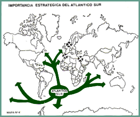 Al no existir un sistema de seguridad sudatlántico organizado, se visualiza la importancia geoestratégica que cobra el océano Atlántico para los países del área y para las potencias extrazonales que poseen intereses en ella: caso de Inglaterra al mantener su usurpación en Las Malvinas, o bien su control en la isla Ascensión donde a Estados Unidos, Londres le facilitó acceso militar y, más al sureste, las denominadas Georgias del Sur.
