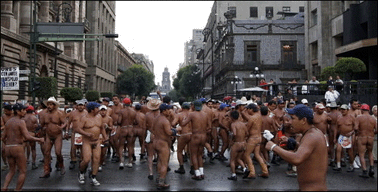 desnuda en el centro de la capital de México tres