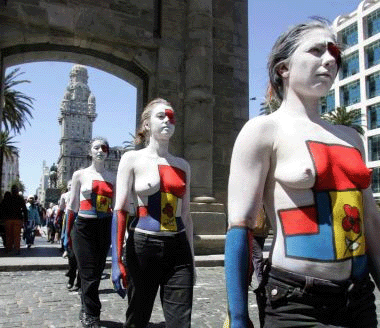 Montevideo con sus torsos desnudos y pintados para