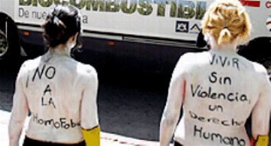 de colores-- pintada en el torso, el colectivo ha
