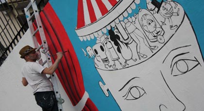 Artistas participantes Jim Avignon: El artista berlinés Jim Avignon es conocido por la rapidez con que pinta sus obras, no importa que sean cuadros, coches o muros enteros. El pintará en el espacio urbano y espera conocer artistas de tu barrio llegando a tu ciudad.