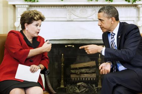 Colombia 2012, delante de los más de 800 asistentes, la presidenta brasileña le dijo a Obama en el hotel Hilton; "Nuestra relación tiene que ser de alianza, pero alianza entre iguales". Obama ya lo había escuchado el pasado lunes 9 de abril, cuando Dilma visitó la Casa Blanca: "la política monetaria expansionista tiene un factor de proteccionismo. Tenemos que tomar medidas para defendernos. No podemos dejar que nuestros sectores manufactureros sean devorados. Esto nos está afectando, transforma a nuestras economías en una presa fácil", recoge en su crónica para Semana com, Nathan Jaccard.