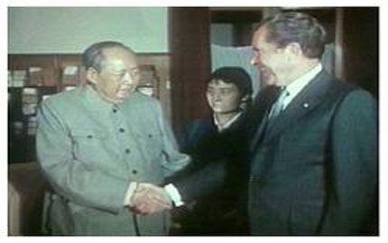 De hecho, China tuvo un papel especial de asistencia a Vietnam del Norte contra los estadounidenses; y sus relaciones con la Unión Soviética estaban agriándose, a tal punto que llegaron a producirse violentos incidentes en la frontera compartida a lo largo del río Amur. Nixon y su asesor de seguridad nacional, Henry Kissinger, consideraron que había llegado el momento de restaurar las relaciones con China, que también temía las ambiciones hegemónicas de los soviéticos. Para ello, Nixon y Kissinger puentearon al Departamento de Estado y al Congreso de los Estados Unidos e iniciaron contactos directos con China a través de canales clandestinos en Pakistán y Rumania.