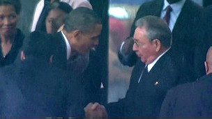 El presidente de EU, Barack Obama, y el cubano Raúl Castro se estrecharon la mano en Sudáfrica a mediados de este mes. El presidente de Cuba, Raúl Castro hizo un llamado a Estados Unidos para establecer “relaciones civilizadas”, diciendo que los dos países deben respetar sus diferencias.