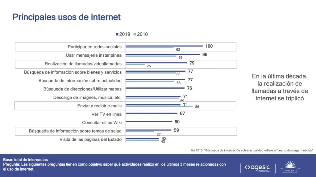 La última edición de la Encuesta de Usos de Tecnologías de la Información y la Comunicación que realiza la Agencia de Gobierno Electrónico (Agesic)