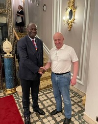 En la cuenta de Facebook previamente privada de Dmitri Sytyi , quien está estrechamente relacionado con las operaciones de Wagner en África Central, se publicó una imagen de Prigozhin estrechándole la mano a Freddy Mapouka , el jefe de protocolo del presidente de la República Centroafricana