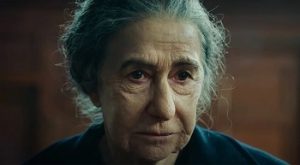 La interpretación que hace Mirren de Meir es francamente asombrosa. Completamente transformada por un cambio de cabello radical y un cambio de imagen facial asistido por prótesis, la glamorosa estrella de Prime Suspect, Isabel I y tantas otras películas premiadas pasaría desapercibida si su nombre no estuviera en los créditos de la pantalla.