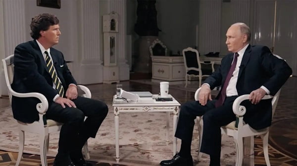 Es que resulta difícil llamar “entrevista” a lo que se emitió el jueves 8. Con precisión, el Washington Post tituló la nota “Putin, en una entrevista incoherente, apenas deja que Tucker Carlson diga una palabra”.