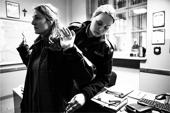 Sin embargo, al arribar a bordo de furgonetas a la frontera con Polonia todo cambia, por el trato violento que los guardias de frontera bielorrusos le prodigan a la familia. En ese momento, abundan el maltrato, los gritos y las corridas y hasta los disparos de armas de fuego de tono intimidatorio. Incluso, los refugiados deben pasar a través de un cerco de alambre. Por supuesto, los interlocutores no logran entenderse porque ignoran las lenguas, lo cual incrementa la confusión y el caos.
