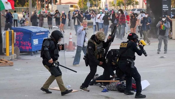 ‌La fuerza con la que ha explotado el hartazgo de los migrantes ante las persecuciones y detenciones de los agentes federales en California da la medida del infortunio y de la rabia de verse cada día vilipendiados por un personaje con el enorme mérito de haber nacido en una casa rica. Que no tuvo que enfrentarse a la violencia que desaloja pueblos enteros en México, o al hambre, o a las dictaduras que devoran a sus ciudadanos. El levantamiento de estos migrantes deja ecos de Delacroix y por unas horas nos permite soñar en una protesta pandémica que remueva hasta los cimientos por donde pisan todos aquellos que alimentan su odio cada día con la migración, que se acercan al poder o lo conquistan a hombros de mentes racistas, supremacistas, arias, que ellos mismos van moldeando.