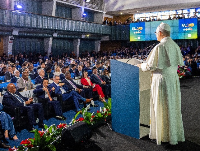 Al inicio de la conferencia, León XIV expresó, en su discurso, que, “si se derrota el hambre, la paz