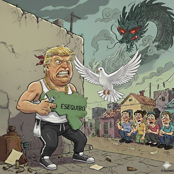 El matón del barrio está embriagado y nervioso, les molestan sus vecinos, esto siempre es peligroso, dicen que es por la cocaína pero su amor es el Esequibo. Los cuentos chinos no lo dejan de paranoiquear.