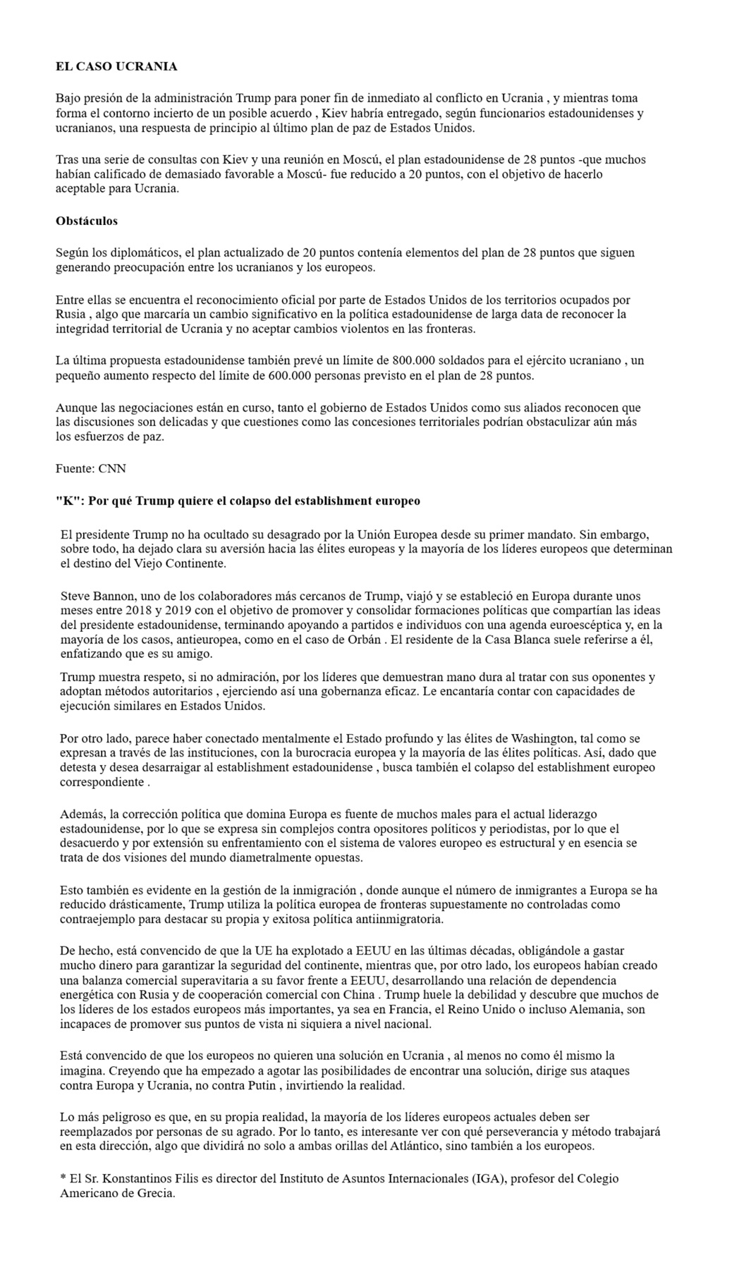 * El Sr. Konstantinos Filis es director del Instituto de Asuntos Internacionales (IGA), profesor del Colegio Americano de Grecia.