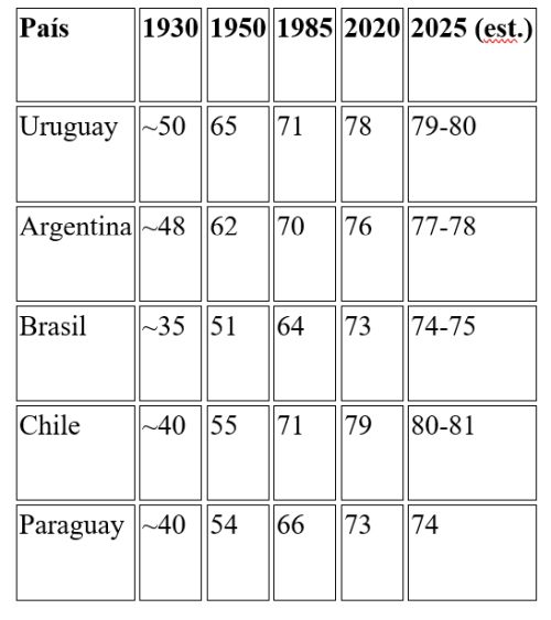 Partimos de las mismas estimaciones en 1930 y nos han superado ampliamente, alcanzando más de 84 años de esperanza de vida en 2025. No tenemos los elementos para comparar la atención entre el sistema público y el privado de ambos países, pues tienen sistemas de salud totalmente diferentes a los nuestros.